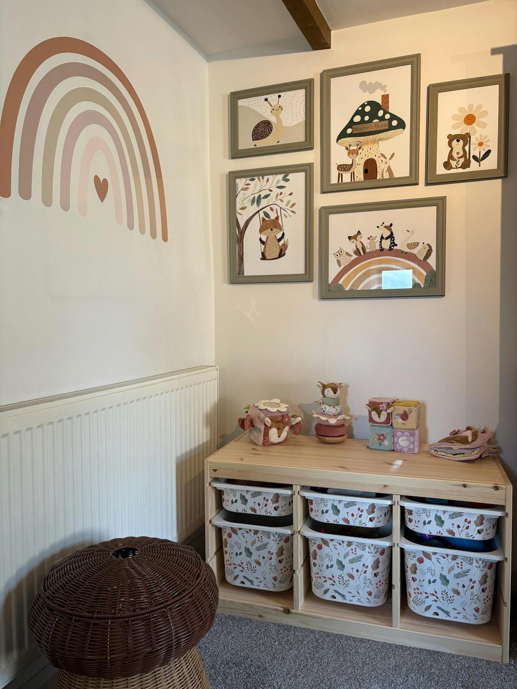 A woodland-inspired 5-piece print set (3 A3, 2 A4) with forest animals and warm tones. Available framed or unframed.