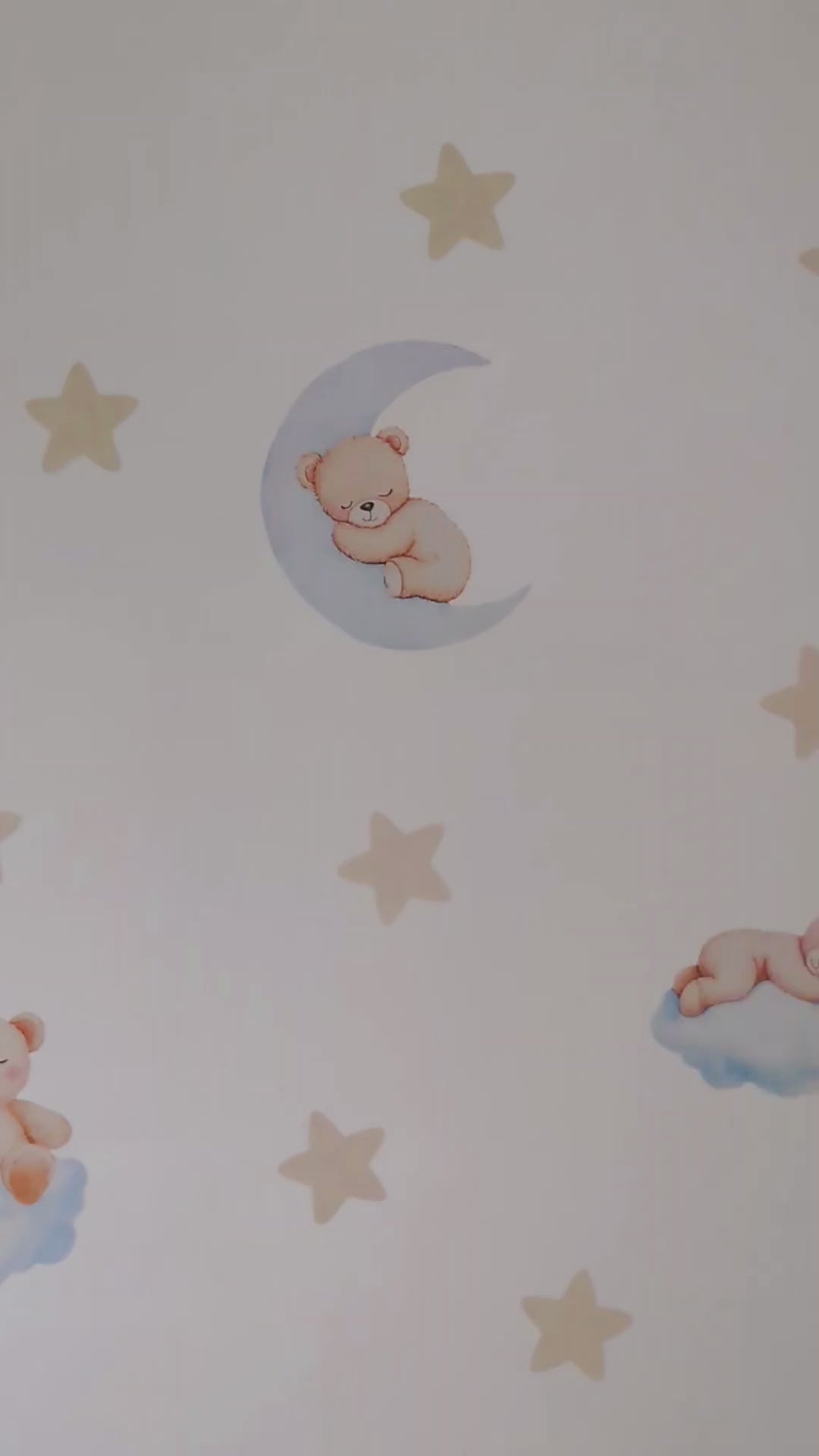 Dreamy pastel nursery wall stickers featuring sleepy bears, stars and a moon.