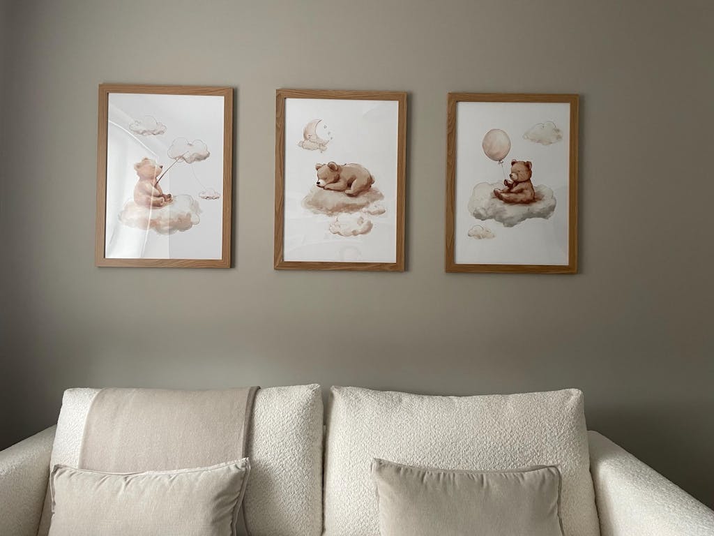 This calming teddy bear set of three wall art prints is sure to inspire a peace full nights sleep. Perfect for for kids bedroom, nursery or playroom. This set includes three fine art archival quality prints.